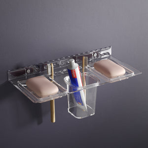 Unbreakable Transparent Wall Mount Acrylic Toothbrush & Tumbler Holder with Soap Dish.